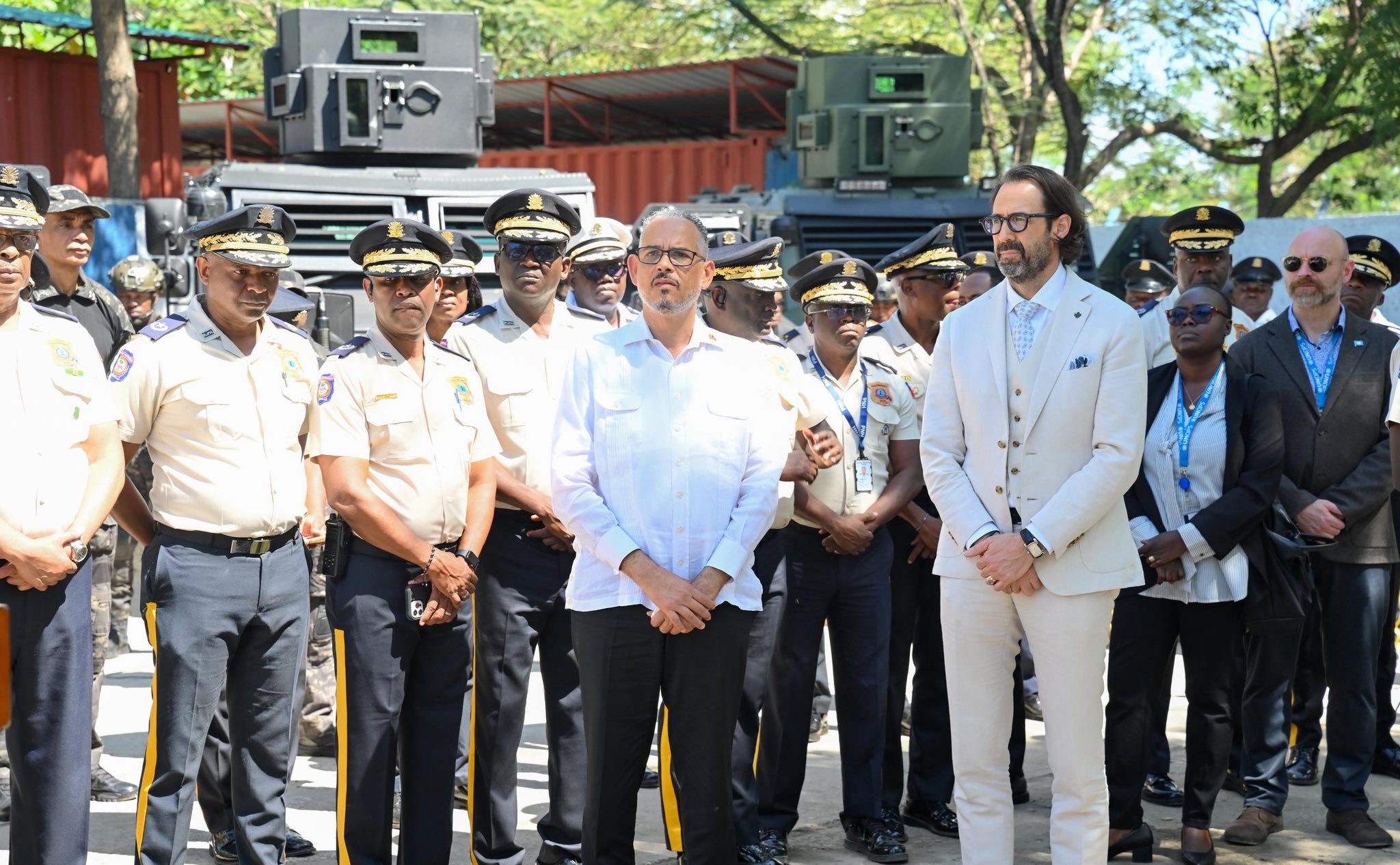 Port-au-Prince, 16 février 2026. — Le Premier ministre Alix Didier Fils-Aimé, accompagné de l’ambassadeur du Canada André François Giroux, a présidé à Clercine, à la Direction générale de la Police Nationale d’Haïti, la cérémonie officielle de remise de dix nouveaux véhicules blindés destinés à renforcer les capacités opérationnelles de l’institution.