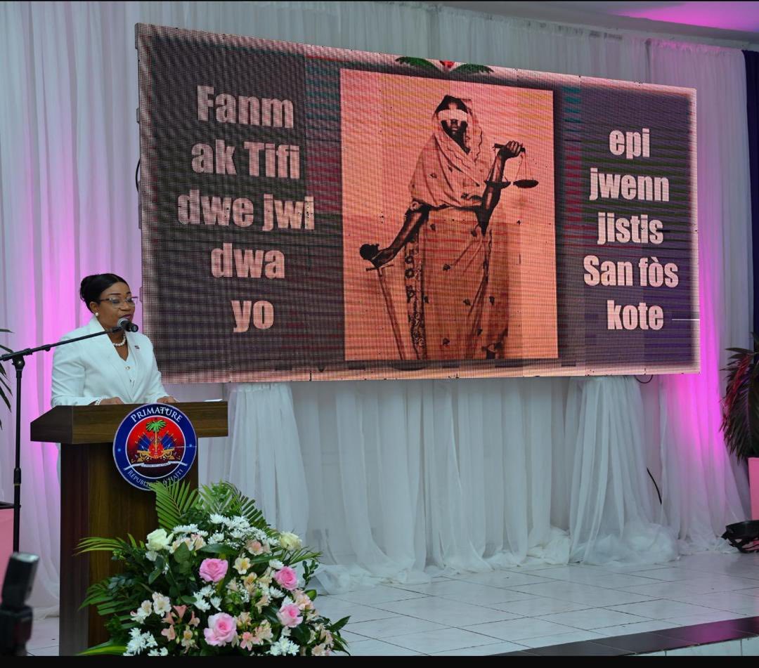 Le Premier ministre a rappelé que le thème retenu pour cette journée — « Fanm ak Tifi dwe jwi dwa yo epi jwenn jistis san fòs kote » — met en lumière l’importance de garantir aux femmes et aux filles l’accès à leurs droits et à la justice.
