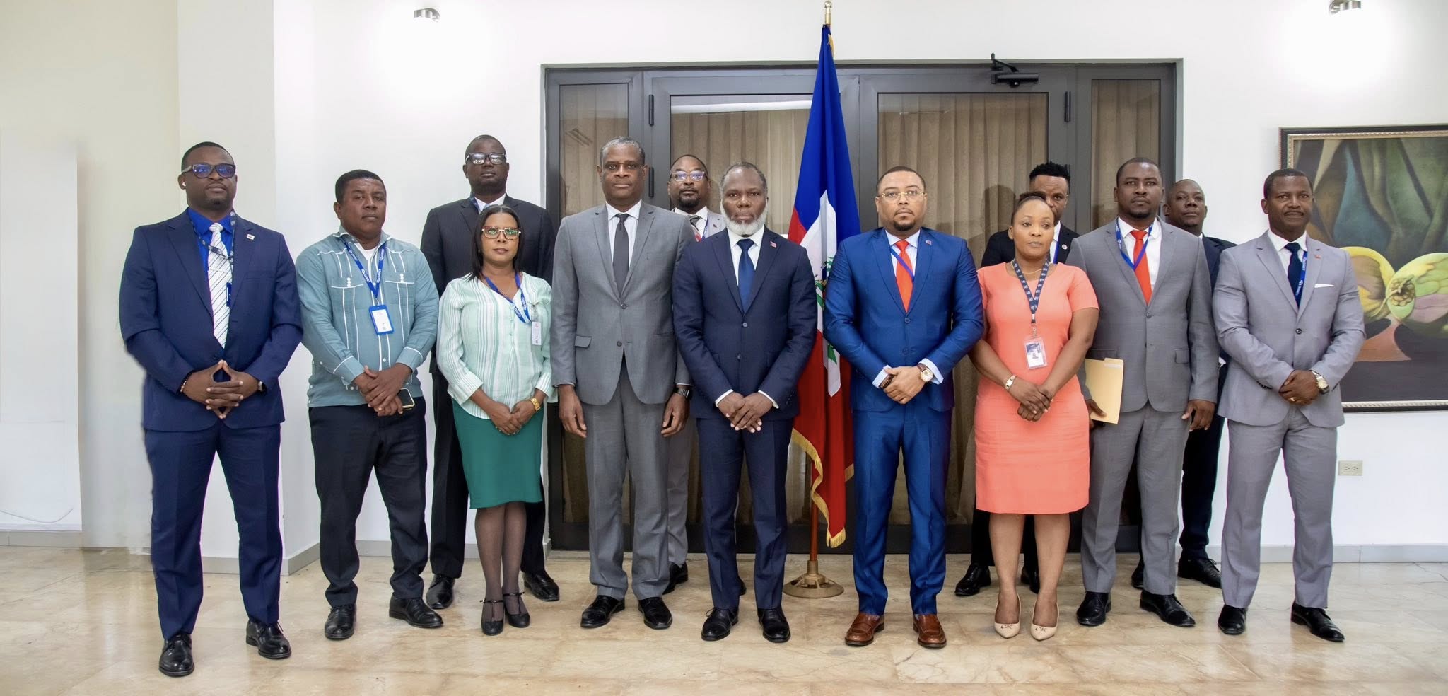 Port-au-Prince, 10 novembre 2025 – Le Conseiller-Président Frinel Joseph a rencontré ce lundi à Villardelle le Ministre de l’Économie et des Finances, Alfred Métellus, le Directeur général de l’Office d’Assurance Véhicules Contre Tiers (OAVCT), Pierre Jean Raymond André, ainsi que dix cadres de cette institution devant prochainement suivre une formation spécialisée au Canada.