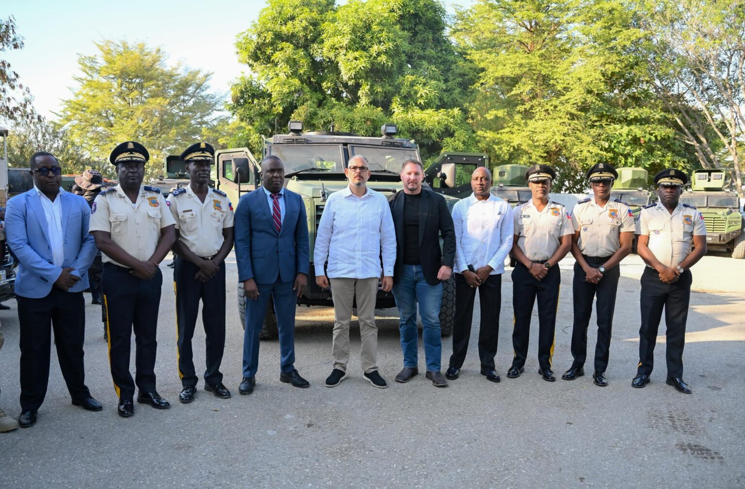 Accompagné des principaux responsables du secteur — Justice, Sécurité publique, haut commandement de la PNH et forces armées — le chef du gouvernement a réaffirmé une « offensive totale » contre les groupes criminels. La remise de 25 véhicules blindés par le Bureau des affaires internationales de stupéfiants et de répression (INL) des États-Unis a été présentée comme un tournant stratégique, censé renforcer les capacités opérationnelles des forces de l’ordre.